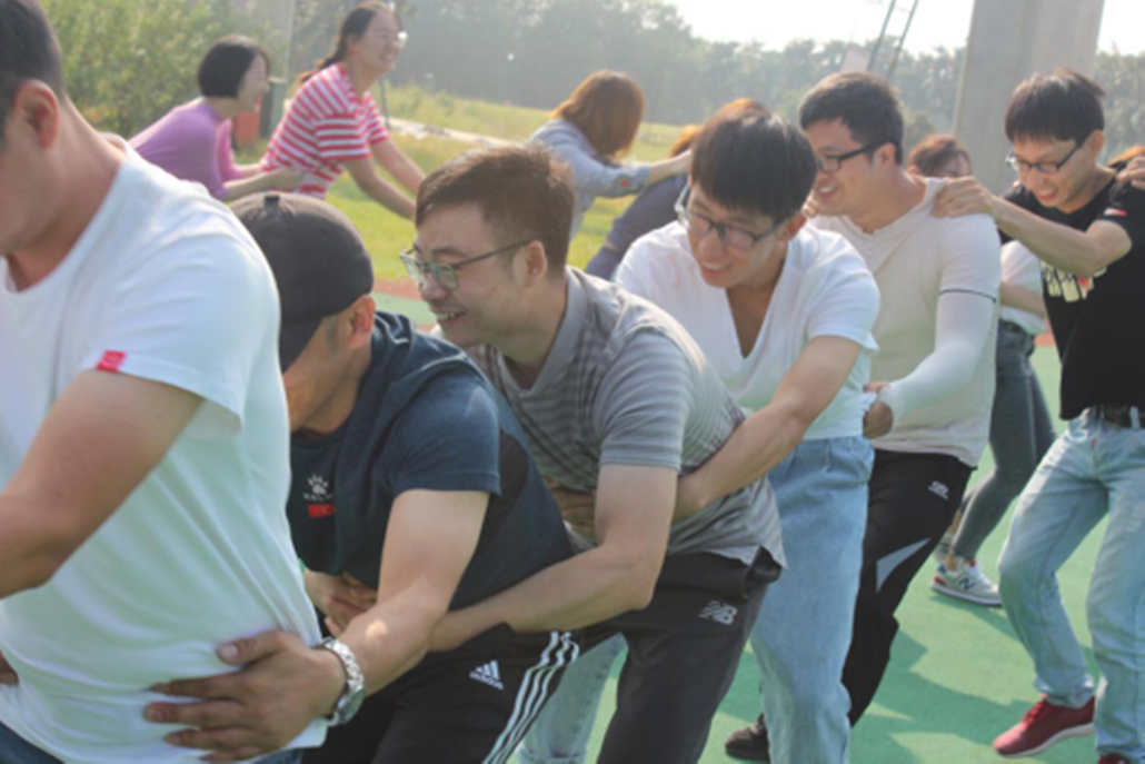 負責我們此次活動的培訓師先通過一系列的輕松歡快的小游戲,營造團隊氛圍,建立相互信任的基礎。緊接著在培訓師的指導下,全體人員分成三個小組,組建戰(zhàn)隊文化、隊名、口號、隊歌、隊形,并按照最終方案向培訓師及其他員工展示排練成果。隨后是精彩中國龍項目,各小組領隊根據(jù)每位隊友的自身優(yōu)勢安排分工,每位隊員各司其職,齊心協(xié)力,打造獨具團隊特色的中國龍并以此龍參加舞龍活動。通過這些項目,每位員工都深刻意識到團隊成功是個人成功的基礎,個人成功必須建立在團隊其他成員的共同努力與共同支持的基礎之上。